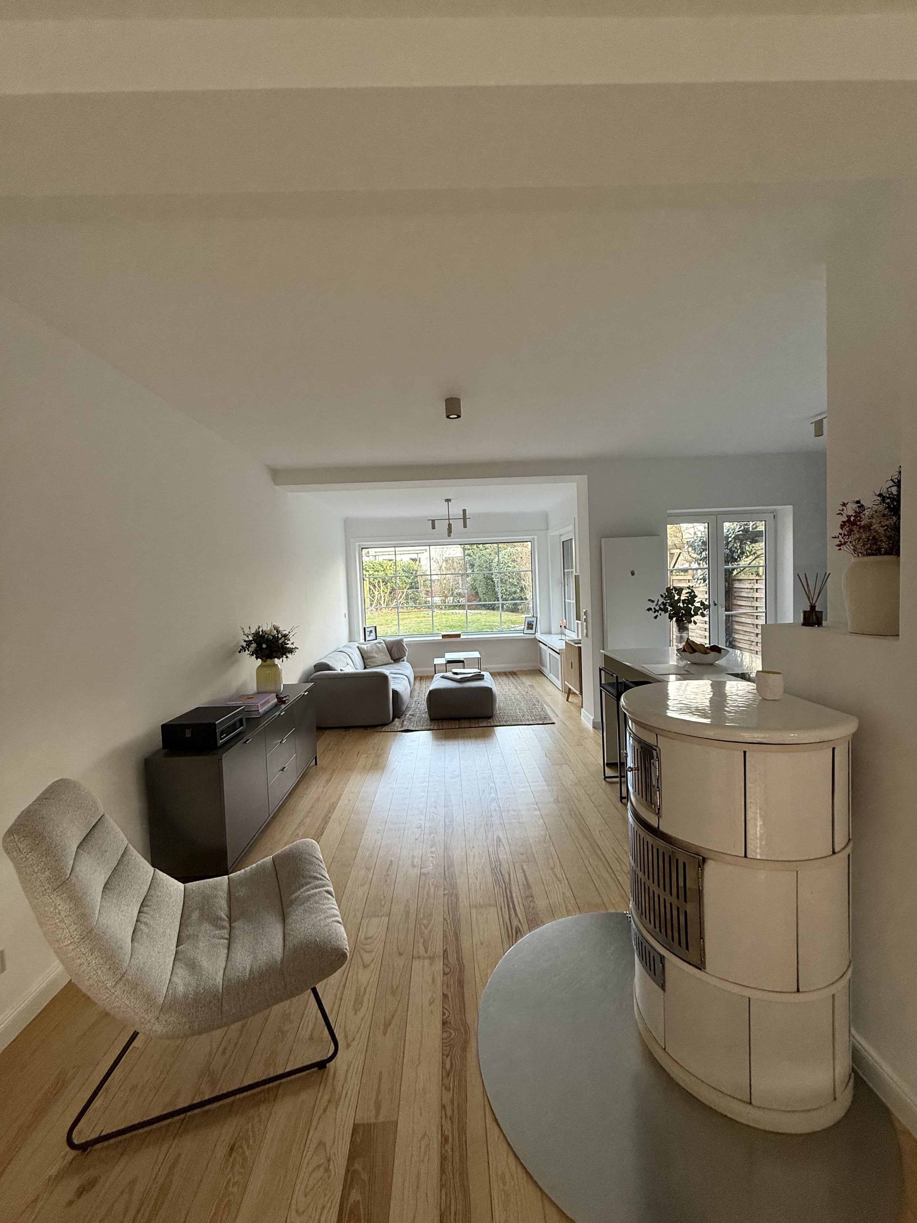 Um eine moderne und großzügige Wohnatmosphäre zu schaffen, wurde ein Wanddurchbruch vorgenommen. Dadurch verschmelzen jetzt Küche, Wohn- und Essbereich zu einem offenen, lichtdurchfluteten Raum, der ideale Bedingungen für ein modernes Familienleben bietet.